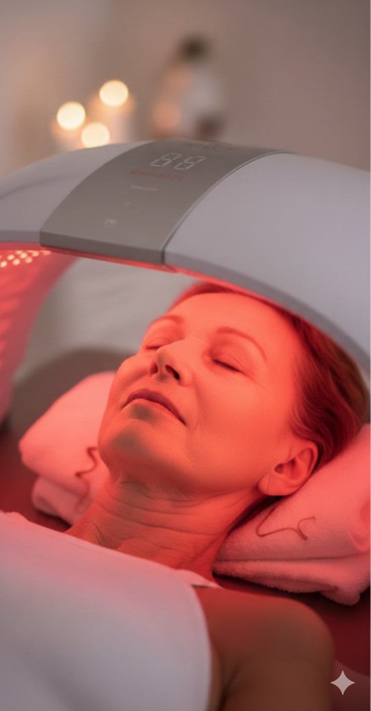 Each session is completely painless and takes just 20 minutes. No UV rays, no heat damage, no downtime. Just science-backed light working to rejuvenate your skin from the inside out.